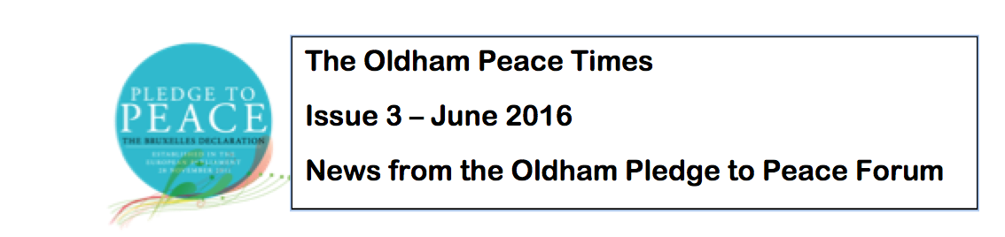 30 giugno 2016 Editorial – Welcome to this third issue of the Oldham Peace Times, newsletter of the Oldham Pledge to Peace Forum. This is a regular publication to inform people and organisations with an interest in working for peace about the Forum and its work Download QRPrint